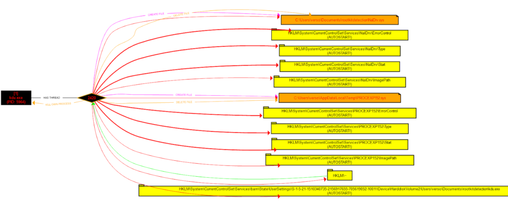 These detection techniques aren’t particularly sophisticated however, and nothing prevents an adversary from patching or tweaking these variables so KDU writes to different registry hives or disk locations. Or worse yet, making it load the victim and vulnerable drivers from memory instead of dumping them to disk first, in which case we would only see the starting and stopping of the vulnerable and victim driver services. Then simply patching the vulnerable drivers with arbitrary null bytes before loading them would modify the hashes detected by Sysmon. Such is life in cybersecurity… In part 2 we’re going to look at some more sophisticated evasion techniques that rootkits use, and how we can detect those too, so stay tuned!