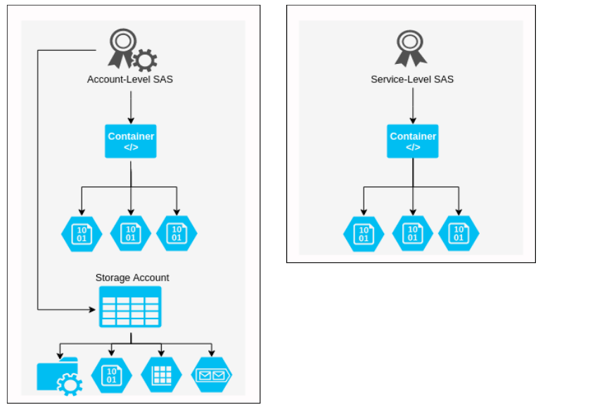 The account-level SAS can provide access to various services present within the storage account, e.g blob, file, etc. providing access to the resource, service level API’s, container API’s, object API’s, etc. and gives pretty much free reign on reading, writing and deleting storage account contents. In contrast, the service SAS gives access to just one service within a storage account.