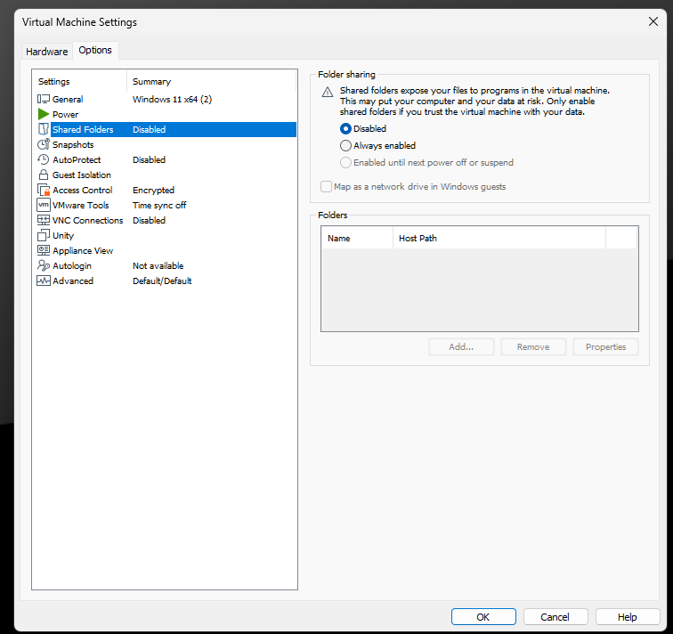 To achieve this, disable shared folders and other options that could potentially allow data exchange between the VM and the host. Here’s how to do it: