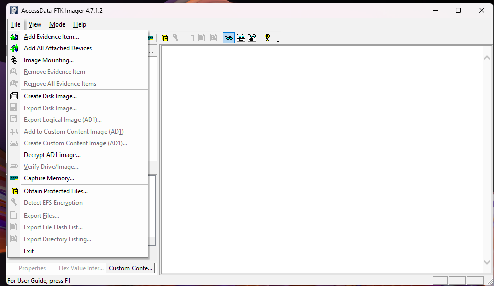 The integration of the write blocker was a critical step in ensuring that the data on the USB drive remained unaltered during the investigation. We used AccessData FTK Imager for this task, a trusted tool in the DFIR community for acquiring and analysing digital evidence. The write blocker was necessary to prevent any accidental writes or modifications to the USB drive, which could compromise the integrity of the evidence.