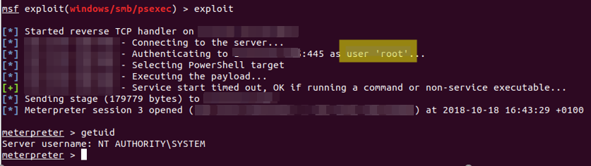 After setting the correct parameters, we execute the exploit and observe the logs produced from this action.