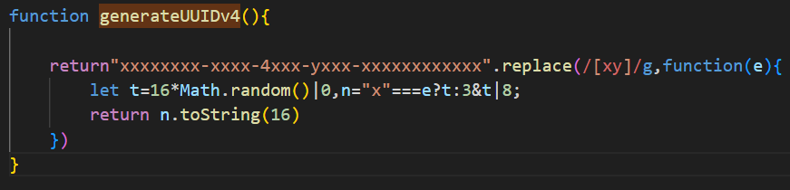 ‘generateUUIDv4’ function generates a random UUID (Universally Unique Identifier) version 4 compliant with RFC 4122.