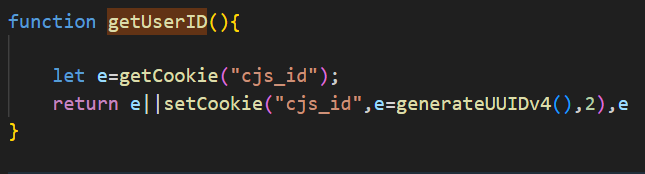 ‘getUserID’ function attempts to retrieve an existing user Id from the “csj_id” cookie, if none exists, generating a new UUIDv4 and storing it in a cookie and returning it. It also maintain the same ID across browser sessions for 2 days.
