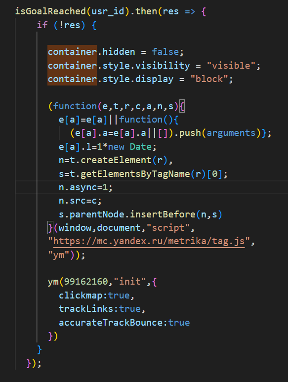 Another interesting aspect involves the ‘isGoalReached()’ function, which triggers a conditional tracking mechanism when the victim fails to complete the fake reCAPTCHA verification process, as determined by ‘isGoalReached()’. When verification fails, it first modifies the display properties of the container holding the HTML, CSS, and JavaScript logic for the fake reCAPTCHA and ClickFix windows. The script then dynamically loads the Yandex Metrika analytics script to monitor “click tracking,” “link interaction logging,” and “bounce rate measurement.” This implementation suggests that the attacker is likely interested in analysing and recording the behaviour of suspicious visitors or potential bots, as legitimate victims who pass verification would bypass this tracking entirely.