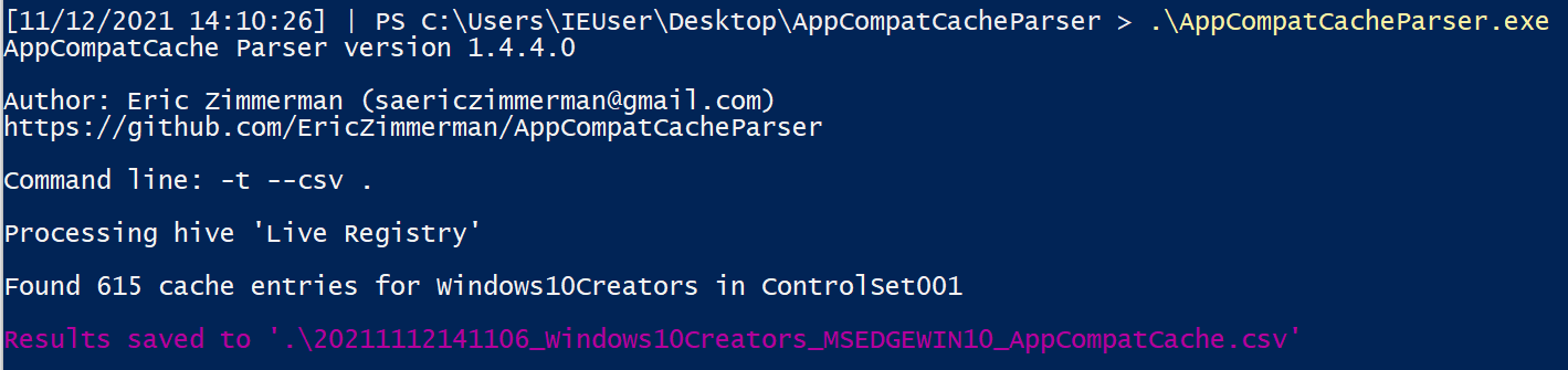 Another Eric Zimmerman tool called AppCompatCacheParser can give us insight into what was run on the system.