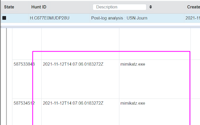 In our USN journal results, we can see the relics of a Mimikatz execution, along with the timestamp that we can use to map the adversaries timeline.