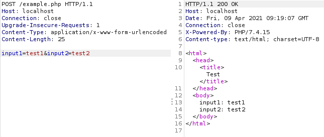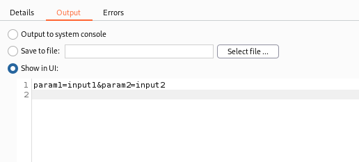 The following snippet of python code can be used to carry out all of this. We can then copy this into the extension script window, and it will automatically update a basic request with input1 and input2 parameters to the desired format. This will happen for all requests Burp Suite processes including those generated by functionality such as the active scanner, meaning the scanner should now pick up any vulnerabilities.