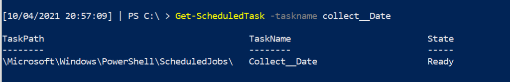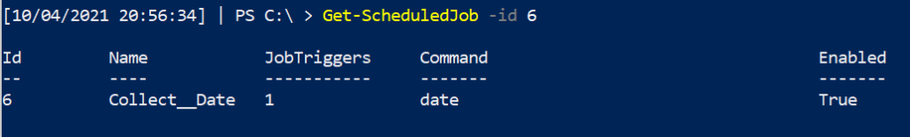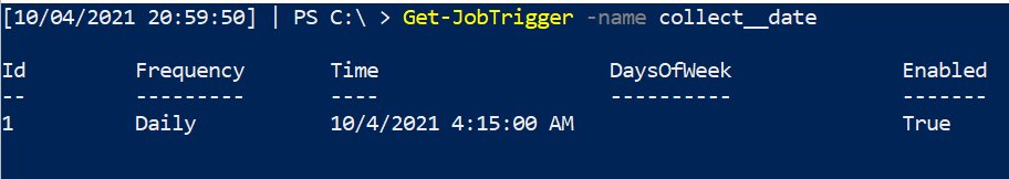 Register-ScheduledJob –Name Collect_date –ScriptBlock {date} –Trigger $trigger