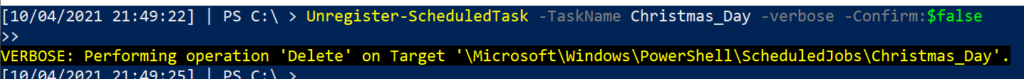 Unregister-ScheduledTask -TaskName Christmas_Day -verbose -Confirm:$false