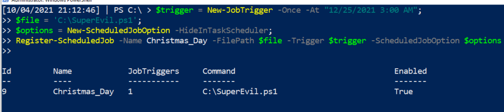 Let’s schedule a malicious PowerShell Job to run at 3 o’clock in the morning on Christmas Day – a gift to incident responders and sysadmins everywhere!