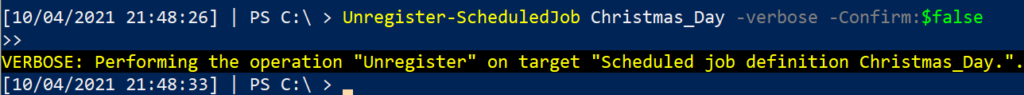 Unregister-ScheduledJob Christmas_Day -verbose -Confirm:$false